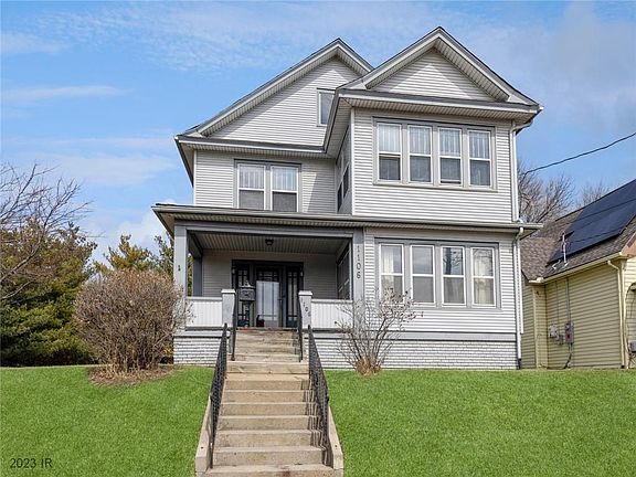 Beautiful, 1900 home loaded with traditional charm, and what an amazing view! Over 2200 sq. ft above ground finish. Main floor is carpeted with hardwood floors underneath. Gorgeous French doors take you into the sunroom. Updated kitchen with all appliances included, and the pantry has been converted to a laundry closet with a stackable washer and dryer. Home has a Formal dining room with a built-in buffet. The primary bedroom and a ¾ bathroom are on first floor. On the second floor are 3 bedrooms with hardwood floors under the carpet. There is another sunroom off the 2nd bedroom. Full bathroom with linen closet. Plenty of storage along with a walk-in “attic” space storage. There is a car and half detached garage and a huge lot. If that is not enough yard the parcel to the West is being sold with the home for a total of .244 acres. Best spot in town to watch fireworks! This is a one of a kind and it can be yours! Don’t wait! Call your agent today!