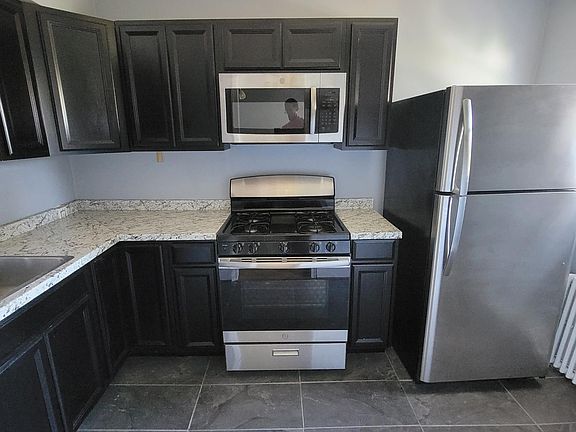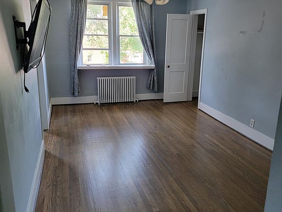 The apartment has new kitchen and bathroom floors, and a freshly finished wood floor throughout. Comes with a wall mounted TV in the living room. Paint, cabinets, and vanity are also brand new to this apartment. Truly a must see