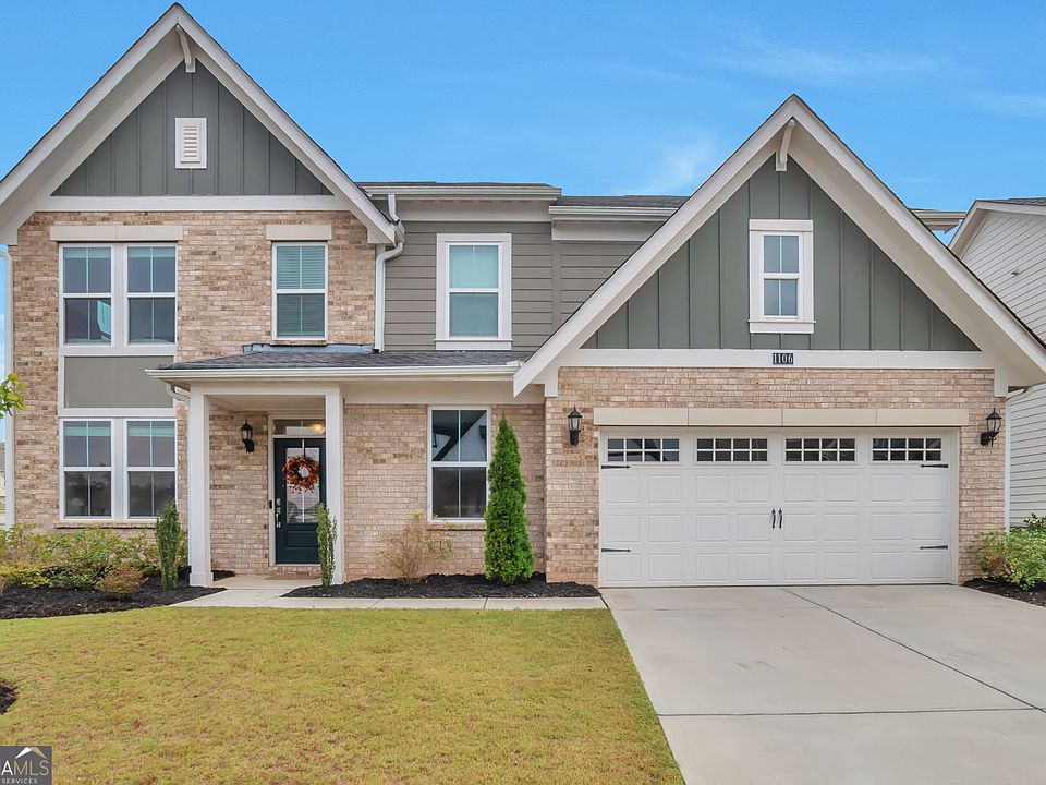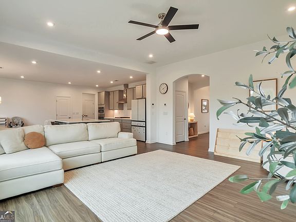 Immaculate, better-than-new Fischer Homes-built residence in the highly sought-after Twin Lakes community! This spacious Grandin Cambridge Cottage plan offers bright, open-concept living with luxury vinyl flooring throughout the main level. A welcoming covered front porch sets the tone, leading into a sunlit family room that opens to a stunning kitchen featuring a huge island, 42-inch upgraded cabinetry, quartz countertops, stainless steel appliances, and a large walk-in pantry. A guest suite with a full bath is conveniently located on the main level-ideal for visitors or multi-generational living. Upstairs, you'll find a spacious loft perfect for a media room, playroom, or second living area. The oversized primary suite includes a double vanity, walk-in shower, and a large walk-in closet. Three additional bedrooms each feature their own walk-in closets. The two-car garage includes bonus space that can be used as a workshop or for additional storage. Out back, enjoy a huge rear deck overlooking a beautifully landscaped, iron-fenced backyard-perfect for entertaining or relaxing. The home also boasts a huge rear deck overlooking an iron-fenced backyard-perfect for entertaining or relaxing outdoors. Located just minutes from I-85 and within walking distance to Publix and Kroger. Twin Lakes offers resort-style amenities: two private lakes, scenic walking trails, two resort-style pools, clubhouse, fitness center, tennis courts, Georgia's largest pickleball complex, dog park, kayak/canoe launch, community garden, and regular neighborhood events that foster a true sense of community.