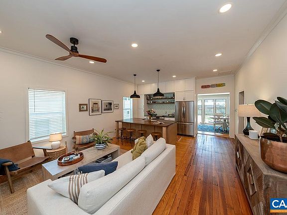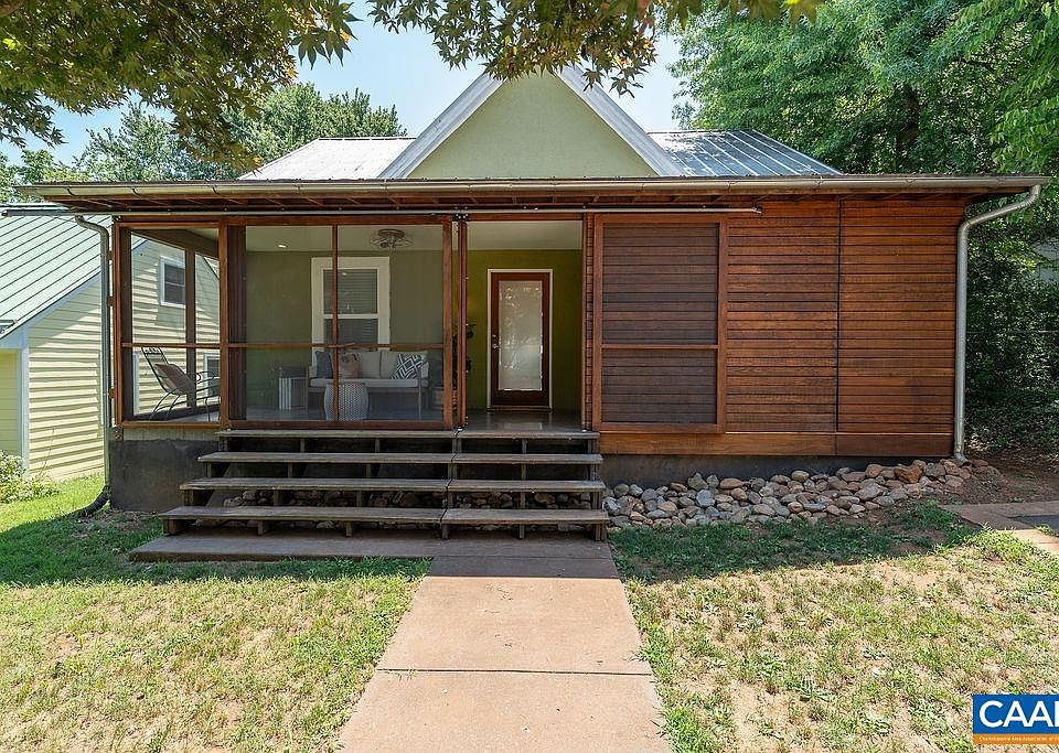 Nestled just a quick walk from downtown Belmont, this lovingly renovated home offers cottage living at its finest. Just past the tree lined sidewalk and off street parking, a screened-in porch with sliding walls provides the perfect perch for starting and ending the day. Once inside, you’re greeted by a spacious great room with open kitchen, beautiful hardwood floors, and a soaring ceiling. Wide kitchen island of Cambia Ash allows for a relaxed dining and entertaining experience. German Greenstone countertops flank the gas range. Dining room features a bank of floor-to-ceiling windows overlooking the nearly level yard. Primary suite includes a private bathroom. Additional full bathroom off the dining area. Second bedroom could serve as the perfect guest spot or ideal office/den. Backyard has a patio and the size provides great potential for gardening, pets, and play for the next owner. Many recent updates. Abundant light throughout. Previously featured in Cottage Living. 1/2 mi. to excellent dining in Belmont, just a few minutes to the Downtown Mall, UVA, and all things Charlottesville.