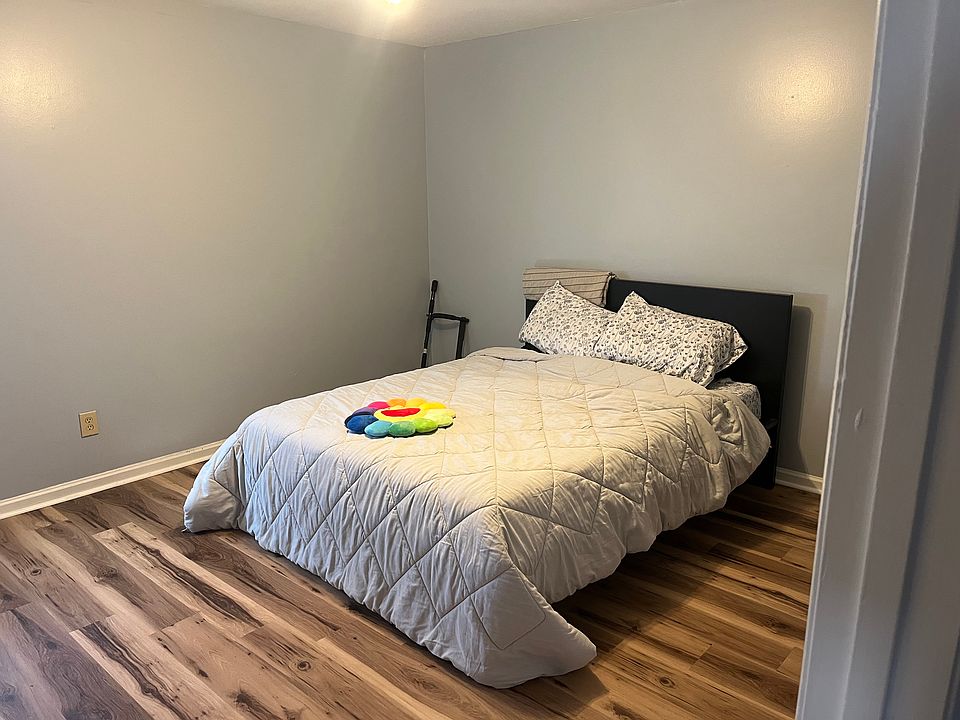 This is a master bedroom with a private bathroom. You get a queen size bed with an optional mattress. Also a 55inch Tv and a desk. A washing machine and dryer are available for all roommates to use. You will be sharing the house with 2 other housemates. The property has a huge back yard and private parking. 2 minutes from the highway and 3 min from Carolina mall. Bills and wifi are included in monthly price Lease is flexible. We have options for 6 month and 12 month. No pets or smoking inside