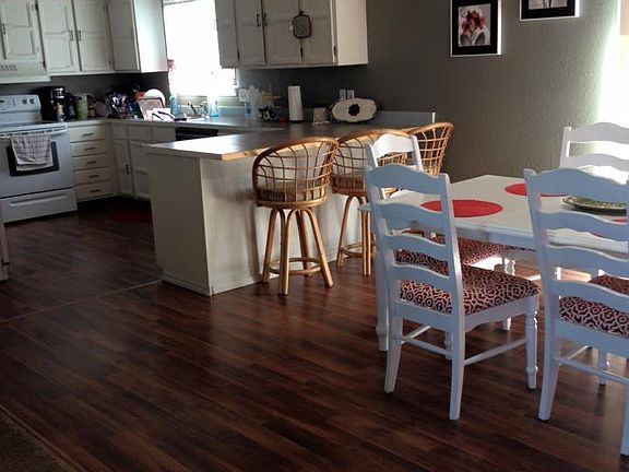 This home has a great open floor plan. New flooring through out the kitchen dining and hall way. Both bathroom floors have also been replaced. Master bedroom has 2 separate closets and a linen closet. This home also has a utility room located on the north side of the house.