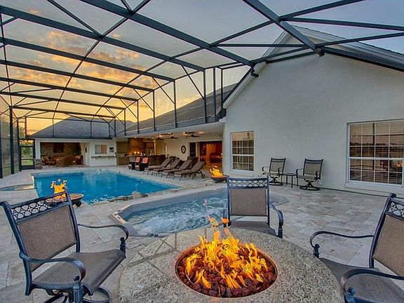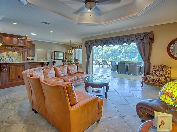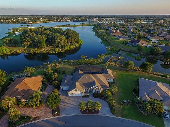 When only the best will do! Customized & TURN-KEY directly on LAKE SUMTER! Absolutely remarkable in every way, this home offers an AMAZING VIEW w/every luxury imaginable inside/out! Designed to perfection, this home was built for relaxation and entertainment! Beautiful porcelain tile throughout interior, 10'/12' ceilings, custom window treatments, crown moulding, plantation shutters & whole home surround sound. Huge great room overlooking a 5,000+-sf lanai! Soundproof HOME Theater w/split level recliners & massage chairs! Kitchen features Hand-Milled custom Cherry cabinetry, Triple Ogee Bullnose Granite, Viking/Thermador appliances, built in Miele Wood paneled refrigerator, expresso machine, proofing drawer, wet island w/Wine refrigerator & Gorgeous Cherry Archway to formal DR! Master suite w/French Doors to lanai, California closet, Jacuzzi & Roman Shower. INLAW SUITE w/tiled, glass STEAM room w/Aroma Therapy. The open concept living is further enhanced by 60' beam at the roof line for a totally unobstructed view! Travertine flooring on lanai, Radiant heaters, 50'x20' POOL (Omni-Logic Controls), multi-color lighting, WATERFALL, tanning platform, seating w/granite tabletop & removable volleyball net. Separate 10 person Hot Tub/Swim Spa, extravagant Gas Fire Bowls w/ 5' flames. FULL OUTDOOR KITCHEN (see Feature Sheet), FIREPLACE with stacked stone & waterfall! Outdoor patio & GOLF Driving Range. NEST Climate System, Golf Cart & RV Garage offer a plethora of storage. PLEASE ASK for detailed Feature Sheet!