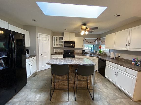 Large home located in desirable neighborhood, with a beautiful view of the lake from your fenced in backyard! This home has many extras including, Stone fireplace and kitchen island, full finished basement, vaulted ceiling, 2 Skylights, hand-scraped laminate wood floors and much more. Bathrooms have been updated and new central heat and air summer of 2018. Main level has 3 bedrooms and 2 full bath, and plenty of closet space. Downstairs there is a potential for 3 bedrooms, large living room, kitchenette area, office and a half bath. Home is move in ready!! Owner/Agent