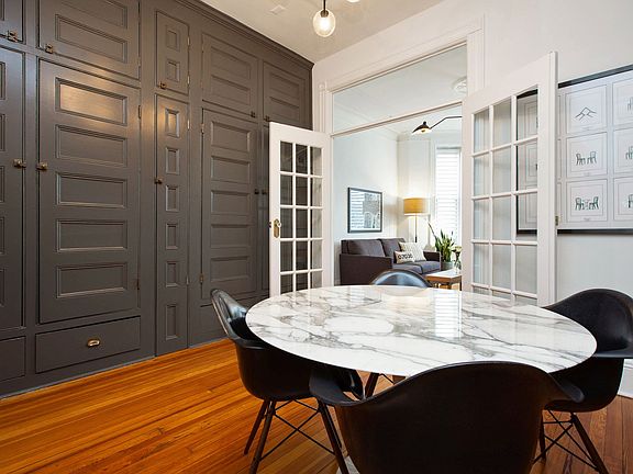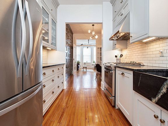 Luxury brownstone living at a fraction of the cost! The perks of an amenity building, pool, gym, and parcel concierge! - at a LOW monthly expense. Fabulous uptown location within a few minutes of all conveniences Hoboken has to offer. Live in an immaculately upgraded condo complete with one of a kind kitchen with soapstone countertops and inset cabinetry, bathroom with marble penny tiles and claw foot soaking tub, custom marble topped walnut and burl wood dresser with lighted mirror above, BRAND NEW high efficiency triple glazed glass and aluminum windows and motorized Hunter Douglas blinds on all 10(!) windows, Nest brand smoke alarms, stunning long-plank hardwood floors, utility cabinet complete with power for charging your vacuums and appliances, coat closet, built in bar, exposed brick in both the dining room and bedroom, gorgeous original oak fireplace, soaring ceilings, and original wall moldings everywhere you rest your eyes. HOA is inclusive of heat and hot water, as well as the beautiful amenities which you won't find in any comparable condo building! Floor to ceiling built-in storage in almost every room, plus additional storage cage in the basement means that your belongings will be tucked away out of sight and within easy reach. New electric sockets and custom switches and plates on each plus new Baldwin handsets and locks on both hallway doors. You will live perfectly in this swanky parlor level two-bed one-bath jewel of a home. No expense has been spared to create one of Hoboken's most perfectly laid out home, you truly must see it. Perfectly located near restaurants, shopping, transportation to NYC and beyond, schools, parks, and waterfront!