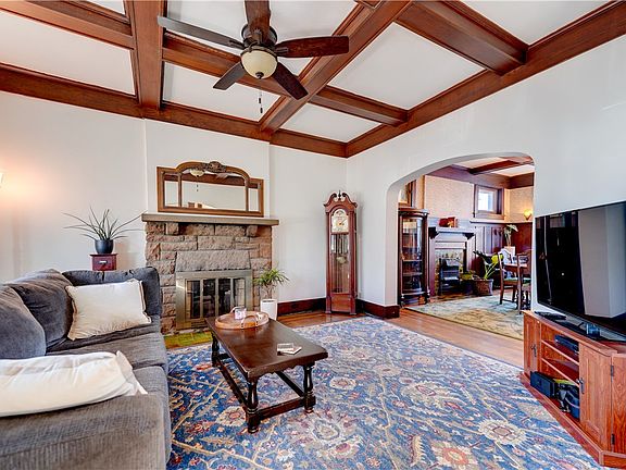 Beautiful four square with original, unpainted woodwork, leaded glass entry, four decorative mantles and coffered ceilings. Updated kitchen and bath, new roof, and privacy -fenced backyard. Mud room with built-in benches offer generous storage for your sports equipment. Detached garage and additional parking pad provide two off street parking spaces. Walkable to Dormont T station and Mt. Lebanon business district & nightlife. Four bedrooms on second level and two additional rooms in attic provide opportunity for office spaces or bedrooms.
