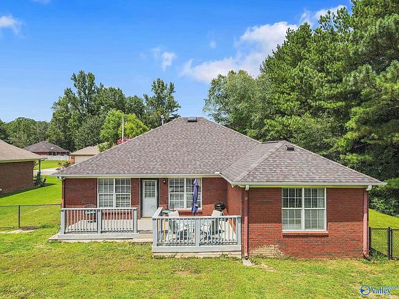 WONDERFUL FULL BRICK HOME IN HARTSELLE. LARGE OPEN DEN HAS GAS LOG FIREPLACE AND BUILT IN BOOKCASES. KITCHEN HAS STAINLESS APPLIANCES, GRANITE AND OPEN TO KITCHEN, SPLIT FLOOR PLAN WITH PRIVATE MASTER SUITE. 9 FT CEILINGS, LARGE DECK, FENCED IN YARD. 2 CAR GARAGE, CULDESAC STREET, HVAC, ROOF 2017, WATER HEATER 2022 ACCORDING TO SELLER.