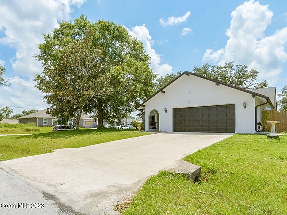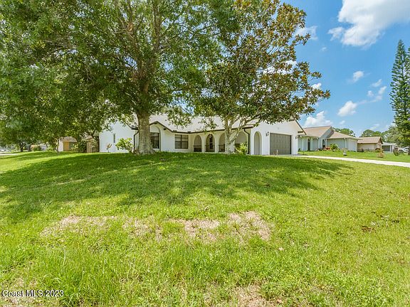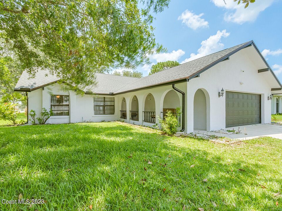 New roof, gutters, and freshly painted exterior just completed! Great location with a large corner lot! Beautiful concrete block three bedroom two bath home. Ceramic tile thru out whole house. Large indoor laundry room. The Main bedroom and family room has sliders to screened in Florida room. Fenced in back yard with utility shed. Make this home yours!