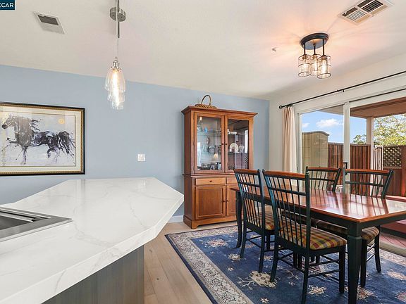 Open House 4/23 1-4pm. Beautifully appointed condo in San Ramon with over 70K in upgrades! This two-story condo features 2 bedrooms and 2 bathrooms upstairs, and a 1/2-bathroom and living areas downstairs. Enjoy the breathtaking views of Mt Diablo and the hills from the primary bedroom balcony. The kitchen has been recently renovated with semi custom cabinets featuring toe kick drawers, quartz countertops, stainless steel appliances and an electric range cooktop. Engineered wood flooring downstairs and carpet upstairs provide a modern look. The designer colors and features front skyline windows that open, allowing for ample natural light are just some of the accents. The wood-burning fireplace is perfect for cozy nights. Hurry grab your BBQ, settle in and enjoy this private backyard... Summer is almost here and the pool and spa are so inviting.. The HOA has recently painted the exterior, and replaced the roof. If you are looking for a move-in ready home, low maintenance backyard then don't miss this opportunity to own this beautifully condo in the desirable California Sun Ridge Community! Close to schools, trails, high end shopping at City Center and movies at The Lot!!