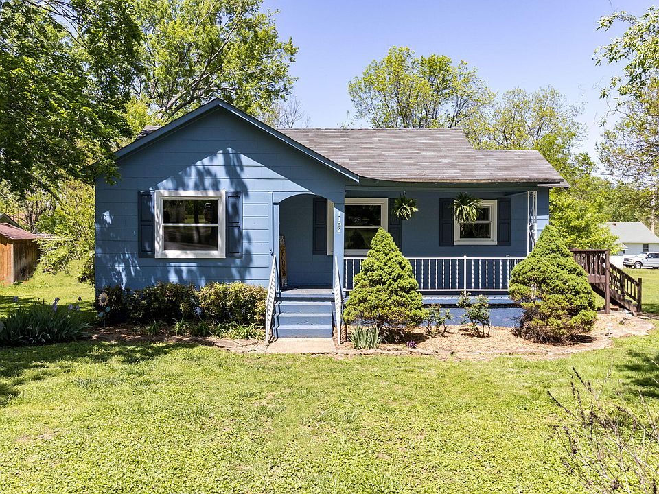 What a dollhouse!!! This adorable cottage has recently been lovingly refreshed with new paint inside and out, refinished hardwood floors and new windows. The large, covered front porch welcomes you up to have a seat, relax and enjoy the cute street of Ridgewood. The spacious living room has lots of light with large windows and leads into a quaint dining room looking out on the front porch and yard beyond. The cute kitchen has lots of white cabinets and counter space and leads back to a separate laundry room and to the back / side porch. The two bedrooms have been refreshed as well and are separated by the bright bathroom with built-in shelves. Add in a large and flat backyard and you have a great place to call home.