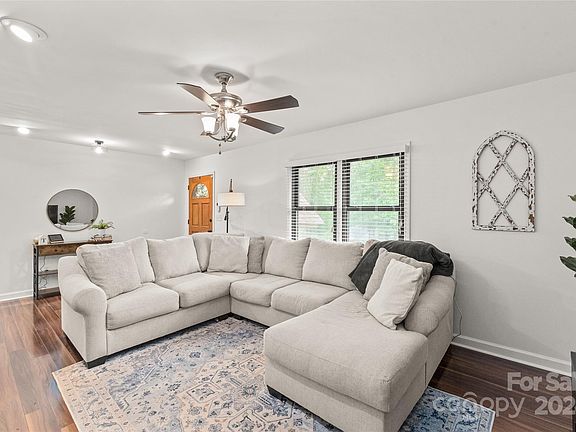 This beautiful completely renovated ranch is located just minutes from the Kannapolis Cannon Ballers stadium and all that downtown Kannapolis has to offer! The home features fresh landscaping, neutral paint, and a bright living room with a limewashed fireplace and directional lighting. Gorgeous hardwood floors flow through the living areas, while tile adds elegance to the wet spaces. The massive eat-in kitchen includes custom cabinets, stainless steel appliances, granite countertops, a farmhouse sink, and a large island with bar seating. The primary suite offers dual closets and a renovated ensuite with an oversized tile shower and custom vanity. Spacious secondary bedrooms, a hall bath with a jetted tub, and a large family room with built-in storage complete the interior. Outside, enjoy a private fenced backyard with a fire pit, two sheds, playset, and patio. Major updates include vinyl windows, crawl space encapsulation, attic encapsulation, and a new roof, HVAC, and furnace in 2014!