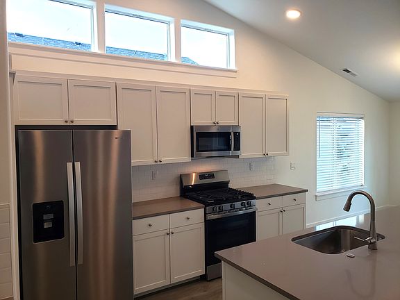 BRAND NEW HOME in wonderful South East Medford on a corner lot. Conveniently located only a couple blocks to shopping(Larson Creek Shopping Center), gym, restaurants, and close to Centennial Golf Course, Asante Medical, and SE Medford amenities. This inviting 3 bed (plus office), 2-bath 1805 square foot home on a corner lot offers a lovely single-level open floor plan and plenty of natural light. Amenities include LVP flooring throughout, welcoming great room with vaulted ceiling and cozy gas fireplace that is adjacent to kitchen and dining, with direct access to the outside patio. Bright kitchen with spacious center island, attractive white cabinetry, quartz countertops, walk-in pantry, gas range, and stainless steel appliances. Lovely and roomy primary bedroom en-suite with large walk-in closet, tiled shower, separate bathtub, and dual vanities. Professionally landscaped yard with drip irrigation, sprinklers and fully fenced backyard. Other features of the home are separate laundry room, central heat and A/C, and 2 car garage. APPLIANCES: Refrigerator, oven/range, dishwasher, and microwave are provided. Tenant provides their own washer/dryer. Hookups are provided for electric(not gas) dryer. REQUIREMENTS: Owners require every applicant to have excellent rental references, good credit, and stable verifiable income source. Household gross income must be at least 3 times the monthly rent. NO Co-Signers. Pet with excellent prior references will be considered(with additional security deposit). No aggressive dog breeds such as pit bulls, rottweilers, etc. NO SMOKERS and No marijuana. RENTAL TERMS: $2525 monthly rent / $3000 security deposit (Additional deposit for pet). A $35 application fee per applicant 18+ y/o for credit and background check after initial application information is processed. Tenant pays all utilities except garbage. Owner pays for and provides landscaper. Owner does not require a fixed lease but would like a long term tenant. HOME IS AVAILABLE NOW. Located on new street at the corner of Harbrooke Rd and Rutherford Drive.