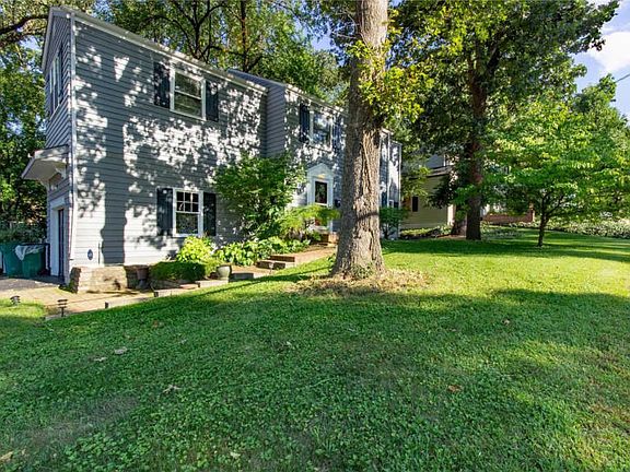 Welcome to this beautiful two-story in the heart of Webster Groves! You'll immediately notice the curb appeal with large trees shading the front porch. Enter to the open layout of the living room and dining room, which feature gleaming hardwood floors and a gas fireplace! The kitchen boasts granite counters, stainless steel appliances, and a breakfast bar. You'll love the airy feel of the vaulted great room! Upstairs, the master suite is a retreat with more hardwoods and a bathroom addition: jet tub, dual-sink vanity, and tile surround shower! Two more bedrooms, another full bath, and convenient second-floor laundry complete the upper level. The finished basement adds tons of space with a rec room and third bathroom! Enjoy the fall weather on the maintenance-free deck under a canopy of trees, overlooking the fenced backyard! Hot tub available for purchase if desired. One-car, tuck-under garage. Just moments from schools, shopping, highways, and parks, this could be your dream home!