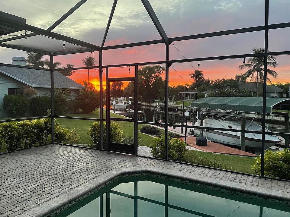 This is an annual rental property. Beautiful Gulf-Access home...boater's paradise with a short cruise to the Caloosahatchee River and then on to Sanibel, Captiva, Fort Myers Beach...anywhere you'd like to go in The Gulf of Mexico, where you'll find dolphins, stork and all kinds of local wildlife. Swimming pool with built-in jacuzzi and covered 12,000-pound boat lift. Large shower designed for two. Evening walks in this quiet neighborhood are complimented by burrowing owl sightings and friendly neighbors. This home has all that you could want in a Florida paradise. Will provide the use of some indoor and outdoor furniture and washer and dryer if desired. This home is offered for annual lease. Renter is responsible for water and electric. Landlord provides pool and yard maintenance at no additional cost to renter.