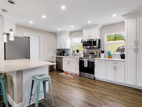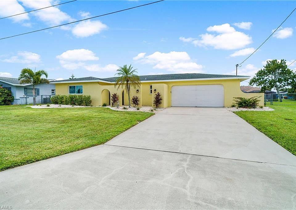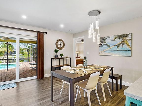 Completely remodeled Gulf Access Pool Home located on the Raven Canal sold TURNKEY! This beautifully updated home boasts 3 beds, 2 baths, 2 car garage with a large heated pool w/ spa, and Tiki Hut to enjoy breathtaking sunsets! Recent updates include: all hurricane IMPACT windows/sliders, all new flooring, interior paint, solid wood cabinets w/soft close, trim, doors/hardware, electrical panel (2019), AC system/ ductwork replaced in (2015), Hot Water Heater (2018), Cage Re-screen in (2017), Exterior Paint in (2018), resurfaced pool; w/ pebble tech in (2019). City water and sewer with ALL ASSESSMENTS PAID IN FULL. Conveniently located in SE Cape Coral, just minutes from downtown Cape Coral, Fort Myers, Sanibel/Captiva, and everything SW Florida has to offer. One block off the Rubicon Canal with a short ride to the river and on to the Gulf of Mexico. Just over 10 minutes out with one LARGE 9-foot bridge to open water! BE SURE TO CLICK THE LINK TO VIEW THE VIDEO OF THE HOME!