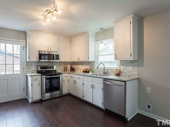 GORGEOUS One level living on HALF an ACRE with 2 car garage! Features a bright open floor plan and upgrades galore including custom designer kitchen with granite, tile back splash & Stainless Steel appliances. Beautiful 5 inch EXOTIC bamboo flooring ; ROOF AND WINDOWS REPLACED 2018. Convenient to RTP, Duke and Downtown Durham. No HOA Dues. Move in and enjoy!