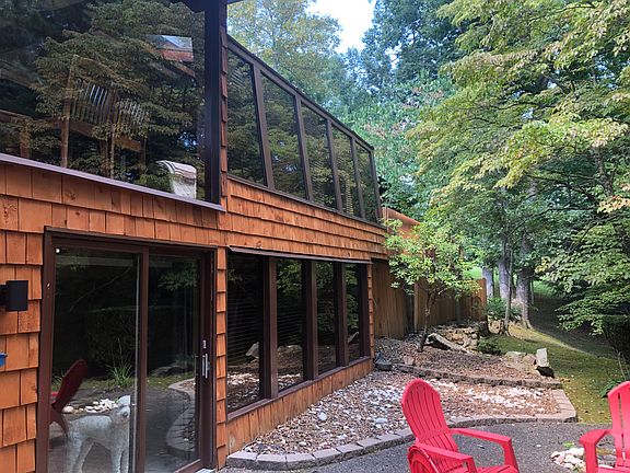 Mid century modern gem sitting on 2.28 acres in the middle of downtown London, but feels like it's situated on a secluded mountain side. Located in Rolling Acres Subdivision and surrounded by large mature trees. This home was built in 1969 by FBI special agent and author ED Swearingen and designed by his wife Paula, who studied architectural design. This home features stunning, large glass windows throughout the entire back of the home, tongue and groove plank ceilings in every room, and large decking perfect for entertaining or reading in privacy. The large glass windows and 11 skylights, all brand new, bring in so much natural light that one never needs to flip a switch during the day. The floor plan is a split floor plan with two large bedrooms on one side of the house and another extra large bedroom on the opposite end with a great room in the middle. Of the three bedrooms, two of those are master suites with their own private bathroom. The largest of the two master suites features a large jacuzzi tub, steam shower, and private sliding glass doors onto the largest of the two patio decks. The other two bedrooms also have their own private doors leading to another patio deck. The kitchen, dining room, and living room all flow together to create a great room feel. The kitchen is a galley style with original solid wood cabinetry and brand new stainless steel appliances. Take a short trip downstairs and you'll find yourself in a finished walkout basement with endless possibilities that include officer space, 4th bedroom, den, man cave, recreational room, family room, or game room. As you pull up to this home you'll notice a large two car garage that easily fits two large SUVs and a circular driveway with two other parking spaces. The exterior of the home is covered in cedar shakes (easily lasting 100 plus years if maintained correctly) and stone. The roof is a brand new flat roof covered in commercial grade rubber composite material found on the roofs of hospitals, malls, and other large commercial buildings. key features include: - 3200 sq ft. - 2.28 acres - Rolling Acres Subdivision - Located in City Limits - Mature Trees - Established Neighborhood - Cedar Shake Siding - Circular Driveway - 2 Car Attached Garage - Flat Roof - Security System - Tongue and Groove Ceilings - Large Exposed Beams - Large Glass Windows - Skylights - Brand New Stainless Steel Appliances - Washer - Dryer - Dual Electric/Gas Heat Pump - 3 Bedrooms - 3 Bathrooms - Jacuzzi Tub - Steam Shower - Private - South Laurel High School - South Laurel Middle School - London Elementary School - 1 Story - Walkout Basement - 2 Decks - Underground Utilities - Landscaping - Crawl Space - Wooded -Mid Century Modern -MCM -Retro