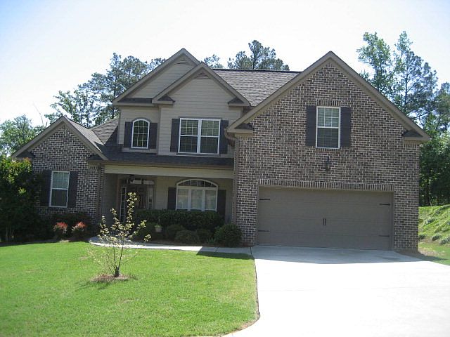 Welcome home to this beautiful home in Sumter Landing! Enter the home from the lovely covered front porch where you will notice the sturdy brick and hardy board construction. Step into the inviting foyer and feel the openness of the large great room with vaulted ceiling and gas fireplace. The owner's suite is downstairs and features a trey ceiling and lots of windows to bring in the natural light. The bathroom has his and hers separate vanities, a jetted tub, separate shower, and gorgeous detailed ceramic tile. The kitchen features stainless steel appliances and the refrigerator stays with the house! Beautiful tile backsplash, granite countertops, and hardwood floors complete the kitchen. There is an eat-in area in the kitchen, or for large gatherings enjoy dinner in the dining room. There are three more bedrooms upstairs and a jack-and-jill bathroom. HOA covers use of the pool, playground, boat dock, private island, and serene walking trails. Priced to sell!