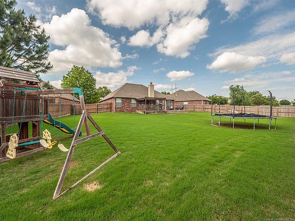 *Move-In Ready Brick Charmer with Fabulous Deck overlooking HUGE, private Backyard + Storm Cellar nestled in South Creek, Jenks W! Open Floor Plan boasts Soaring Ceilings, Kitchen with light & bright Breakfast Nook, Family Room with beautiful brick fireplace & Dining Room. Master Suite has private Bathroom with whirlpool and fabulous walk-in Closet. Two additional Bedrooms and Guest Bath complete this welcoming home. Enjoy family strolls to the HOA Parks for summer fun in the sun! SZ