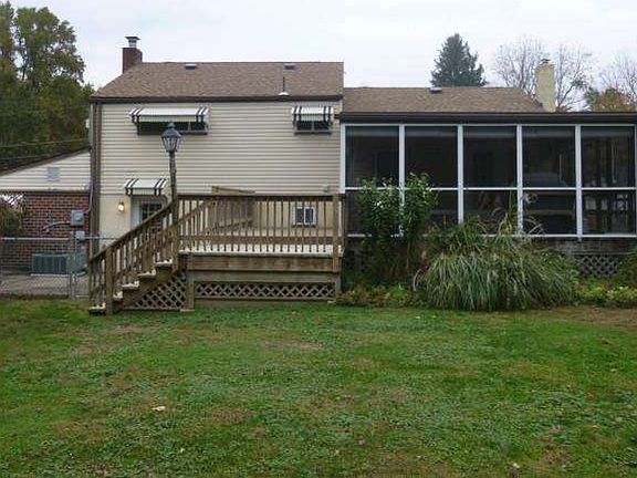 Large upgraded Country Home on nice size treed and landscaped lot. Enter into tiled living room that serves as four season Florida room to enjoy the change of seasons in comfort. Built in custom oak bookshelves lead to dining area and large open eat in kitchen. Breakfast nook off kitchen has custom double French doors to large enclosed deck and second open air deck. Fenced patio area overlooks park like rear yard including recessed above ground pool with sun deck. Kitchen finely pointed with granite counter tops, custom oak cabinets with sliding steel inserts and new island. Stunning solid oak floors throughout living and kitchen area add an extra touch of class. Expanded master bedroom with solid oak floors, large remodeled hall bath and good size second bedroom occupy upper level. Lower level has huge fully tiled recreation room with brick fireplace with wood burning insert, built in cabinets and oversized pantry/storage closet. Expanded fully tiled bath on lower level has large handicap accessible shower. Ground level rear entry makes lower level prefect for in law suite. Lower level also has adjoining sitting room or den and bedroom with large double closet. Lower level den and bedroom have brand new carpets and paint. Basement provides laundry area, heater area and additional storage. Built in home security system. Will appreciate custom woodwork and modern open floor plan. Detached 1.5 car oversized garage with electric and automatic garage door opener. Oversized driveway and side yard area in front of garage is fenced with locking tall privacy gate. Provides great storage area for RV, boat and wave runners. Massive front driveway easily accommodates 6-8 cars. Desirable neighborhood very close to I-95 and Pa turnpike, Schools, Colleges, places of Worship, recreation, shopping and restaurants. Home is super clean and in move in condition. Put your finishing touches on a unique home in a Bensalem Community recently ranked as one the top 100 places to live in America.