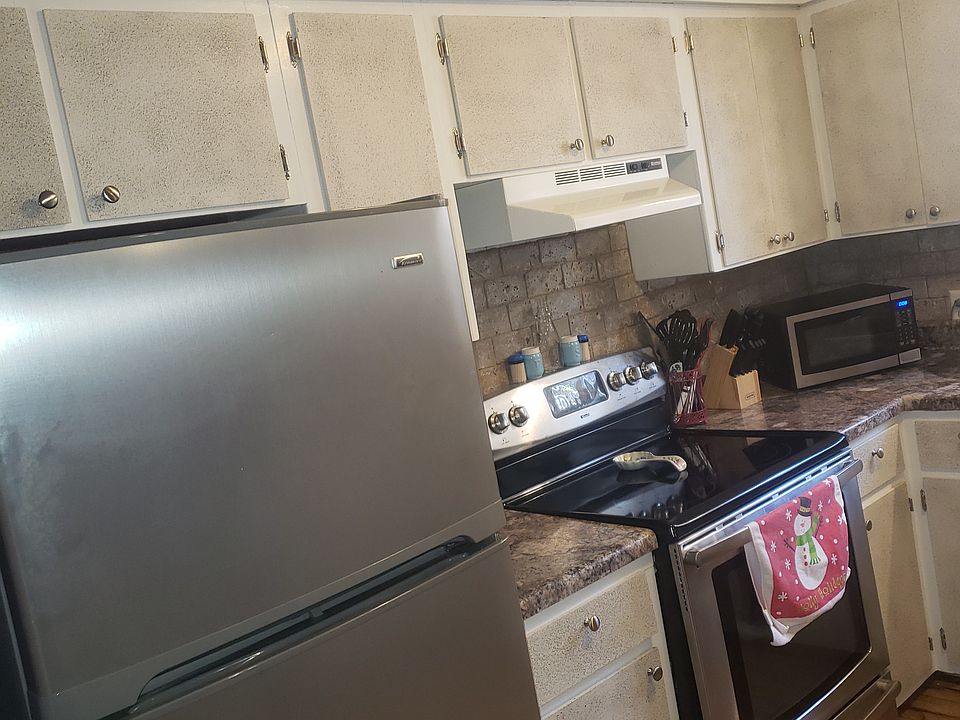 3 bed 1 in a half bath house with plenty of updates including kitchen cabinets, flooring, windows, CHA, light fixtures, tub/shower combo and vanities! Quiet neighborhood and very cost efficient home! All stainless appliances stay with the home! Dishwasher, stove and refrigerator. Enjoy the side deck and the privacy fence back yard!