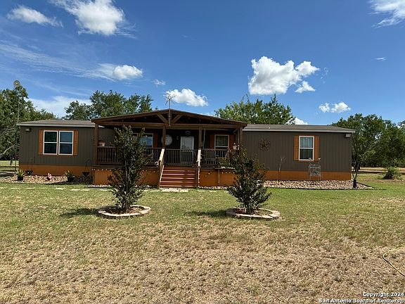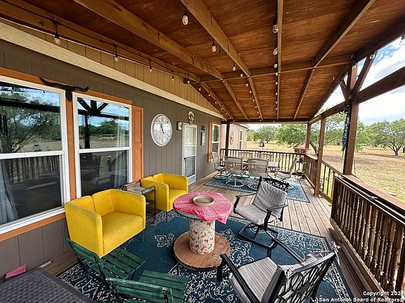 Back on Market - Buyer Unable to Close! FHA appraisal met value. Welcome home to nearly 14 acres of ag-exempt land with a 4 bedroom, 2 bath retreat. This home offers nearly 600 square feet of covered outdoor decks & a shaded backyard. Relax with your coffee overlooking the sunrise on the front porch, or celebrate with family & friends with BBQ and beer on the covered back deck. This serene property offers mostly open fields with scattered mature trees on the frontage and mesquite trees and a seasonal creek at the rear that makes for good hunting if desired, cattle or sheep or farming space. Inside, the two living areas offer sanctuary from the Texas heat and space for everyone, including an island kitchen to serve holiday dinners from or sit around and shoot the breeze. The home features a split floorplan dividing the three secondary bedrooms on one side from the owner's suite on the other. Stepping in from the living room, the grand primary suite offers refuge and relaxation for owners with plenty of walk-in closet space. Meanwhile, from the family room, there are three sizable secondary bedrooms.