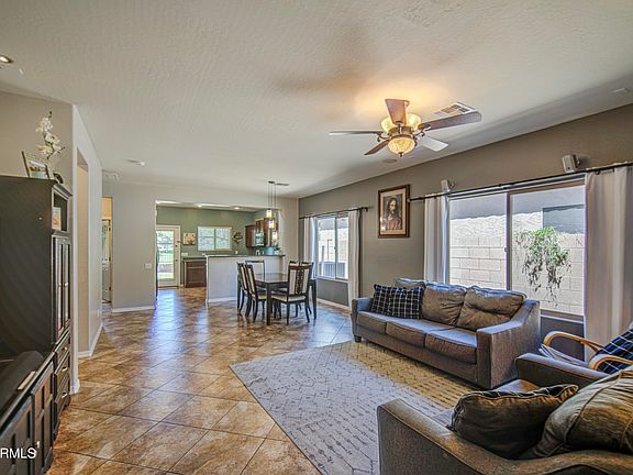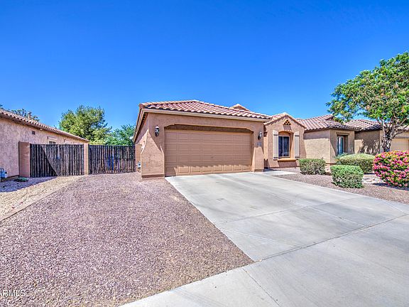 Nestled in the popular community of Bella Via, this 1769 SqFt open floor plan features 9 ft ceilings, 4 bedrooms and 2 full baths, new exterior paint, kitchen & breakfast bar w/ Corian tops, stainless steel appliances, diagonal tile flooring in the kitchen and living areas, and a master retreat with a huge closet! The A/C is less than 2 years old with an upgraded Ecobee T-Stat. The water heater is less than 5 yrs old. Home includes WiFi security cameras and a 220V outlet for an EV-charger in the 2 car garage! Entertain friends and family in the charming backyard overlooking the neighborhood park. Quick access to the 24 & 202 freeways and adjacent to Eastmark with all the shopping and dining you could want! This is the right home in the right place for the right price!