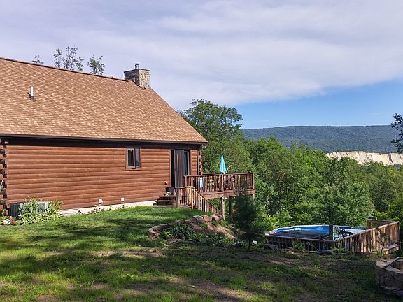Panoramic view from this newer log home on 34 acres overlooking Mill Creek Hollow. Native stone fireplace built from stones gathered on property. Hickory floors on 1st floor and loft. Kitchen features hickory cabinets and island, all with granite tops, all appliances included. Master bedroom has bath with jetted tub, dbl bowl sink and walk-in closet. Loft is perfect getaway area or additional bedroom space. Finished lower level has 16X18 family rm, 2 bedrooms and full bath. Home has central vac, central air and is economically heated by outdoor furnace. Property is in Clean and Green tax program causing total taxes to be only $1,070 for 2017.