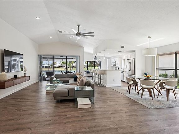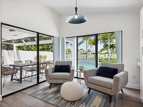 Nestled in the heart of Boca Woods Country Club, this renovated 3-bedroom, 2-bathroom home offers a perfect blend of elegance & tranquility. The heart of the home is the open kitchen creating a seamless flow between the living & dining areas. Featuring modern finishes, stainless steel appliances & island seating for 5. Step outside to your own private oasis, where an amazing outdoor patio pool area awaits with views of the tranquil lake and lush fairway . Whether you're enjoying a morning coffee or hosting a sunset gathering with friends, this outdoor space is perfect for enjoying the Florida sunshine. Country Club offers 2 golf courses, pickleball, tennis, fine & casual dining, fitness center, spa, game room & much more. Mandatory membership $ 95,000, see attached yearly fees & dues.