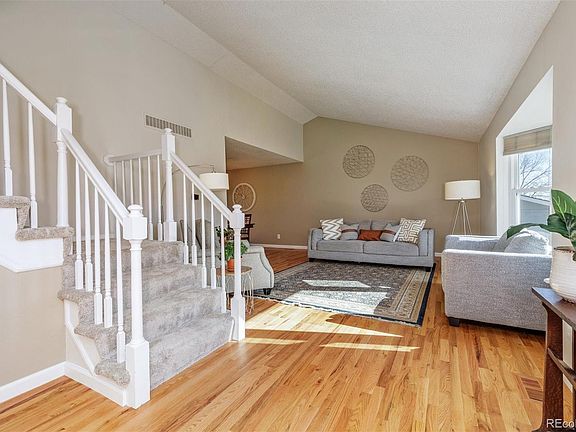 Great layout and updates in this sunny 2 story home with finished basement in desirable Cherry Creek Vista. The updated kitchen with abundant cabinetry, granite counters, and stainless appliances is open to the family room with fireplace and built in’s. On the other side of the kitchen is a formal dining room which accommodates a large table, and flows into the open vaulted light filled living room. French doors from the kitchen area open to a covered patio with private yard and mature landscaping. Convenient main level laundry includes a utility sink and extra storage; the main level is completed by an updated half bath. Fresh new paint and carpet complement the abundant hardwood flooring. Featuring 3 beds up: Owners Suite with walk in closet and updated bath, plus 2 additional bedrooms and an updated hall bath with granite counter and double sinks. The lower level is finished with a family room, bedroom/office (non conforming), another updated bath, and a storage room. Award winning Cherry Creek schools. Walk to parks and pools, easy access to I-25, I-225, as well as light rail. Move in ready, newer roof, windows, and HVAC! Showings start Friday, 9am, 3/17/23.