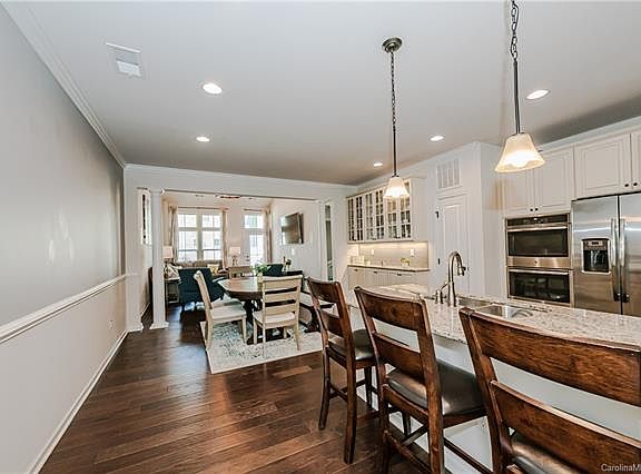 Welcome to this spacious and beautiful 3 bedroom, 2.5 bath townhome located in popular Edison Square. Enjoy the bright and airy open floorplan! Kitchen features upgraded cabinets, subway tile backsplash, stainless steel appliances, large peninsula island, and granite countertops. The sizeable Great Room features a cathedral ceiling and Klipsch sound system. The gracious, main level master comes with a tray ceiling and is equipped with a bathroom ensuite and large walk in closet. Upstairs you are greeted with a spacious media/playroom loft overlooking the downstairs great room. In addition, there are two bedrooms with large walk in closets. Use some additional flex space as an office, exercise area. The home is within walking distance to restaurants, fitness, daycare, and so much more. Concord Mills and Northlake Mall are just a few minutes away. Convenient access to I-485, I-85, and I-77. This townhome has everything you are looking for!