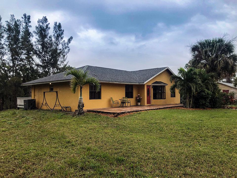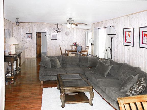 CBS home sits on 1.25 acres fenced in with a pond. 3 Bedrooms, 2 baths, new 3 car attached finished garage.