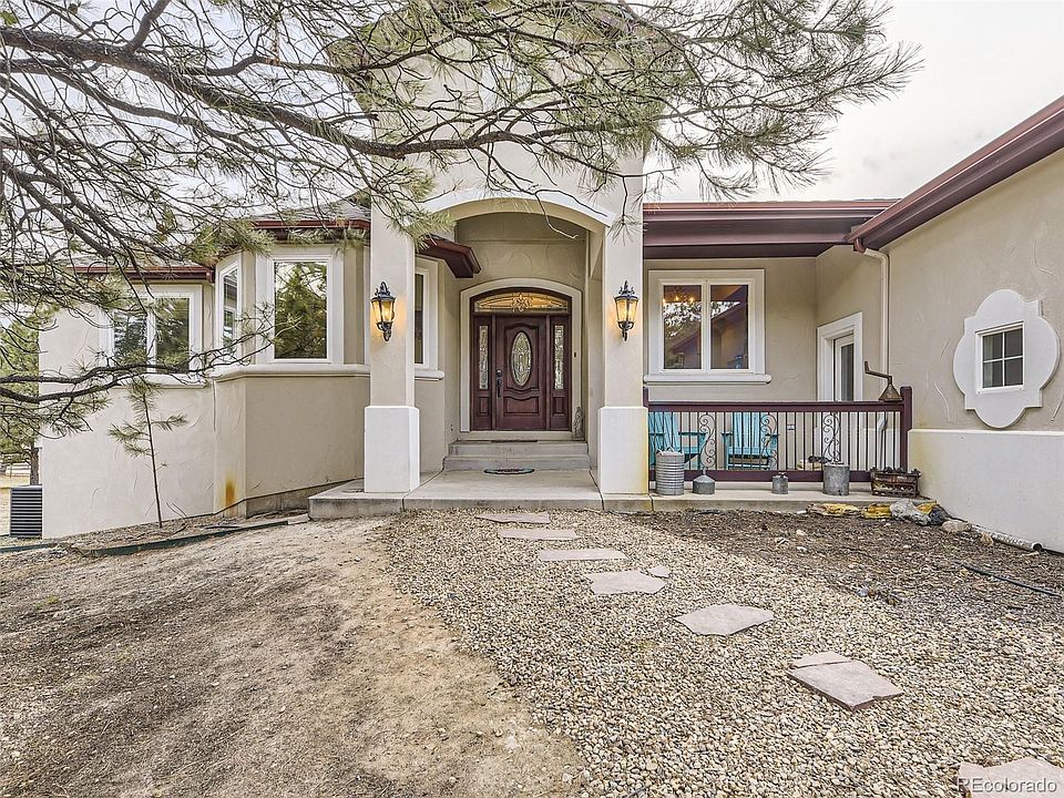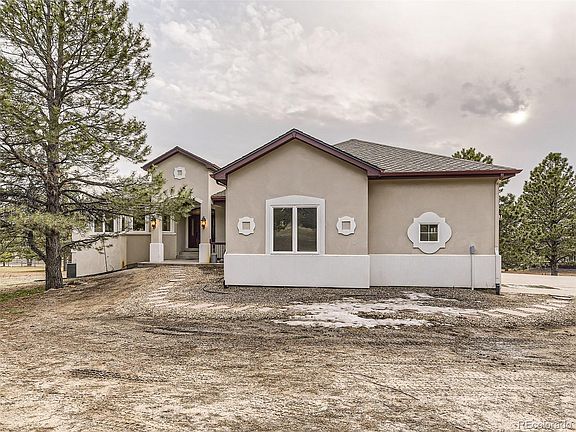 Introducing a stunning equestrian compound in a highly desirable location with over 10+ acres on a flat and usable space. Enjoy a wonderful balance of 12,600 sqft indoor riding arena and outdoor riding arena with the ability to ride all year long. This first class equestrian dream offers 15 spacious stalls, heated barn, European stall fronts, rubber mats, auto waterers, wash stall, hot water, grooming stall, tack room, 3/4 bathroom w laundry, office, fly mitigation system and much more. The stylish main house offers just over 5,100 finished sqft with a full finished walkout basement that could serve as mother-in-law quarters or a variety of other purposes including housing for full-time help. Main level features 3 bedrooms, 3 bathrooms, open floor plan with a family room and spacious kitchen, beautiful tile floors, high ceilings, fireplace and covered outdoor patio. The lower level features an additional bedroom, 1.5 bathrooms, full kitchen including cook-top, refrigerator, dishwasher, microwave, island, theater room, and bar area. The main floor also includes a gorgeous formal dining room, and a large private study for those working remotely. New roof installed in 2024, water heater 2023, new A/C 2023, new upstairs refrigerator 2024, and new furnace 2024. All of these unique attributes combine to create an unmatched private oasis in close proximity to Colorado Horse Park and a short drive into Parker.