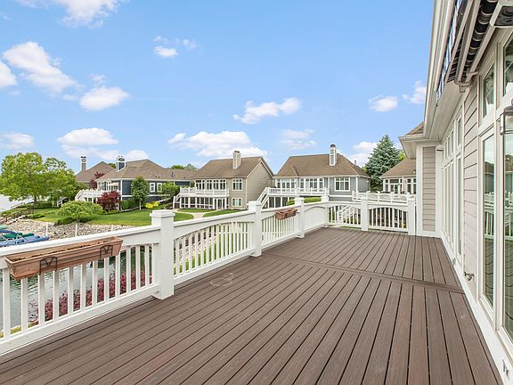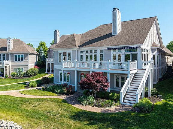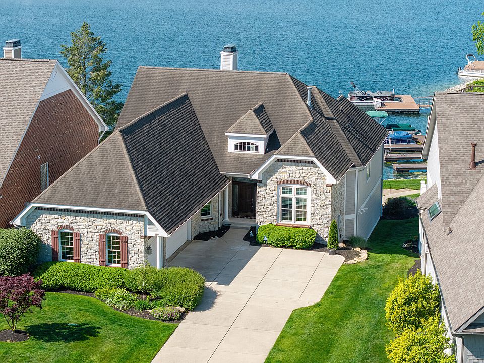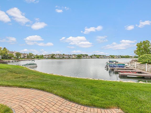 Back on the Market with UPDATES! New Flooring, Paint, Lighting, +more to see! Discover the beauty of this charming, one-of-a-kind neighborhood: LAKE STONEBRIDGE. It's like being on vacation everyday! Custom built John McKenzie home on an irreplaceable 70 acre PRIVATE LAKE with a boat slip and WATER VIEWS from almost every room! Enter this quality ranch home with beautiful leaded glass around the front door, custom built-ins in the great room, along with the double-sided fireplace and a wall of floor to ceiling windows showing the fabulous lake views! Kitchen is open to the breakfast nook and hearth room w/hrdw flooring. Kitchen island, breakfast bar, Large pantry, gas range, & prep sink. The primary suite offers a private retreat, complete with a tray ceiling, floor to ceiling windows with LAKE VIEWS and crown molding that adds a touch of elegance, as well as an ensuite bathroom that promises relaxation and pampering; unwind in the jetted tub after a long day on the lake, or enjoying the convenience of the double vanity, walk-in shower and large walk-in closet. This property offers a spacious new trex deck and retractable awning where you can savor morning coffee or host evening gatherings enjoying the water view. Some updates needed but not to the Dock -is 2 years new with floats and Trex decking($25k) plus NEWER WINDOWS throughout ($125k) Rare, long driveway allows ample room for guests to park. Heading down to the lower level- rec./family room with stone fireplace, wet bar with full fridge. Plus a HOME THEATRE-ready for movies and comes with comfy recliners. 2 Large bedrooms w/walk-in closets and 2 FULL bathrooms Plus large storage room! Walk out onto a large patio and custom pavers leading to the lake. Grab your lake toys and head out to enjoy all the outdoor water activities! Minimum mntc. community takes care of the lawn care, edging, mulching, trimming, snow removal plus MUCH more! Lake Stonebridge is a hidden gem - come see for yourself!