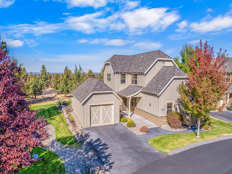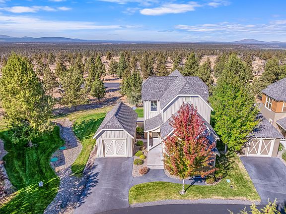 This wonderful home is situated on an exterior lot in The Ridge at Eagle Crest, with unique views of the cascade mountains and sprawling BLM beyond the common space. Exemplary craftsmanship of Sun Forest Construction boasts wood cased windows, hardwood floors, solid wood doors and cabinets throughout. This thoughtfully laid out floor plan offers a great room downstairs with a corner gas fireplace and sliding glass door to the back patio, while the living/flex room upstairs has an abundance of windows to capture the views and bring in the natural light. Primary suites on each level, and an additional powder/laundry room downstairs. Kitchen has plenty of cabinet space, granite tops, built in buffet and slate flooring. Detached, extended single garage and has an overhead storage rack and a drop down ladder with ample storage space in the attic. And lets not forget, with this home comes all the enjoyment of the Eagle Crest Amenities! Welcome to your home in the High Desert!