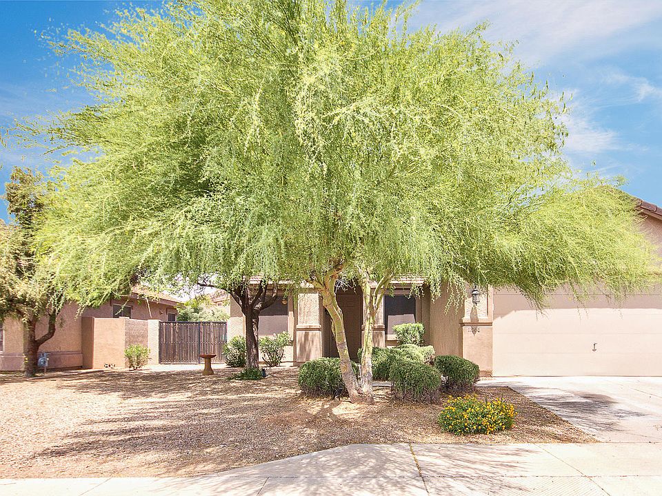 Welcome home! This 3 bedroom 2 full bathroom home has it all. There are upgraded tile floors throughout the home and newer stainless steel appliances. Dual sinks in master and hall bathroom. A 3 car garage with drive thru 3rd car and RV gates on both sides provide plenty of room to store toys and the oversized back patio and spacious backyard has plenty of room for the kids to play or entertain guests. The mountain views, close proximity to community park and walking distance to elementary school are just a few more amenities. This home will not disappoint.