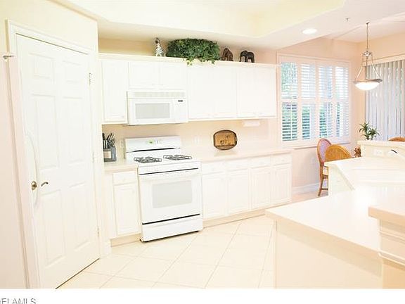 Sunsets are amazing at this 1st floor TURNKEY Carriage Home! Nestled next to the 16th green, stunning views of the golf course will be enjoyed from your lanai and the oversized master bedroom. Three bedrooms, 2 baths and an open floor plan allow for great entertaining options. You'll enjoy the spacious living area - with a great room, dinning area, split bedrooms, walk in closets, double sinks and even a private water closet. A large open eat-in kitchen offers a gas stove top, walk in pantry, and bar seating. A separate dining area allows for a little more formal setting if desired. Great lighting, tile on the diagonal, plantation shutters, and furnishing elegantly provided by award winning "Robb & Stucky" Design Center make this condo a place you can now call home!