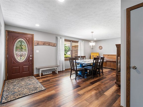 Nestled on over half an acre in the desirable Lake school district, this charming ranch offers the perfect blend of comfort and modern amenities. The inviting covered front porch welcomes you into a spacious dining room with a large window, providing abundant natural light. The gourmet kitchen features extensive cabinetry, beautiful Quartz countertops, and newer stainless steel appliances, including a stove ('19), dishwasher ('21), and refrigerator ('24). An eating area completes this culinary space. The family room exudes warmth with its brick, mantled fireplace flanked by built-ins, while the fabulous great room addition impresses with a vaulted ceiling, skylights, panoramic backyard views, and sliders leading to a deck. There is a half bathroom conveniently located off the kitchen. Retreat to the owner’s suite with its generous closet space. Three additional bedrooms and a full bathroom with double sinks and ample storage complete the main level. The full, finished basement is a versatile space, offering a convenient kitchenette, family room/rec area, full bathroom, and a multi-purpose room currently used as a bedroom, which can easily serve as a fitness room or office. Outside, the deck (composite decking) overlooks a spacious yard with mature shade trees and a "she shed," ideal for use as a detached garage for a third car or storage for yard equipment. There is also a 2-car attached garage. Experience the best of Uniontown living in this delightful home!