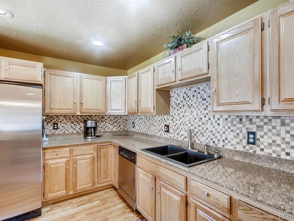 A bright and airy 4 bedroom, 4 bath home on a quiet cul-de-sac nestled on a corner lot with mature landscaping. This SUPER clean, fully updated, maintenance-free home features an open floor plan, vaulted ceilings, and with the finished basement has 2,652 finished square feet of living space. The stunning kitchen has beautiful granite slab countertops, custom backsplash, oak cabinets, a large island with breakfast bar, hardwood floors, and a stainless steel refrigerator and appliances. There is a bedroom and a half bath on the main level. 2 upper levels have new carpet installed, a spacious master bedroom with 5 piece bath and walk-in closet, 2nd bedroom, additional full bath, and convenient upstairs laundry. The basement is finished with an entertainment room, bedroom, and full bath. Additional features include new ceiling fans in every room, 2 car attached garage, covered patio, and central AC for those hot summer days. The HOA takes care of so much for this home: the siding, the roof, exterior insurance, common area landscaping and maintenance, and trash and snow removal, making this virtually a turn-key property. This home is a short distance to the Gardens on Havana where you can shop and eat and is near to Canterbury Park. Convenient to 9-mile station where the RTD, Light Rail, and I-225/I-70 are accessible. Bus stop #11 is only a 10-minute walk for your easy commute to Downtown Denver. Cherry Creek schools are the icing on the cake! (Sellers will need 3 days after closing to move). Condo/townhome is not approve for FHA!