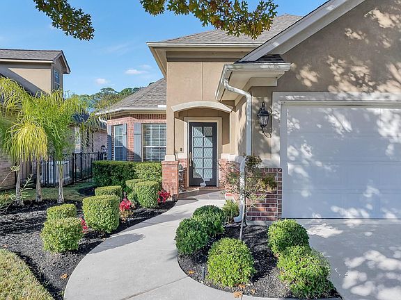 Hunters Landing Waterfront Beauty. A rare corner lot with a 3 car garage. Located on a wide canal just seconds away from the open waters of Lake Conroe. A quaint gated neighborhood with only 51 homes. Comes with it's own boat slip, lift and cover! The inviting entry has a sitting area and formal dining room with tile flooring and slate accented walls. The eat in kitchen overlooks the living area and has gorgeous maple cabinetry, granite counters, stainless appliances, breakfast bar and a new sink. The living area has a slider that opens to the large covered patio and deck. Primary suite has wood laminate floors, high ceilings, jetted garden tub, separate shower, dual vanities with new quartz countertops and a nice sized walk in closet. Upstairs is a bedroom and gaming/entertainment area, full bath with walk in closet and another large room used as an office. The second level has endless possibilities. Weekly lawn care is included with the monthly fee. Live where you love to play!