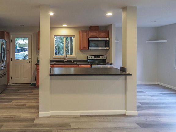 This exceptional remodeled home is available now!! . The upstairs features laminate flooring through out. Kitchen has all appliances, an Island for extra seating and a view of the meticulously manicured backyard. This is a great room setting with dining room and living area. There is a slider off the living area that leads to a covered deck that overlooks the backyard. The two bedrooms with carpet and main bathroom are on the main level. The downstairs features a bonus area, full bathroom with stackable washer/dryer and the third bedroom. Off the bonus room is a slider that leads to the backyard. Lease terms: 12 months Pets: Sorry, no pets Utilities : Water/Sewer is a Bill Back Utilities Paid by Tenant: PGE, NW Natural, Garbage Yard: Tenant Responsibility Appliances: Dishwasher, Stove/Oven, Refrigerator, Microwave, Washer/Dryer Schools: Grade: North Marion Primary Middle: North Marion High: North Marion Information deemed reliable but not guaranteed.