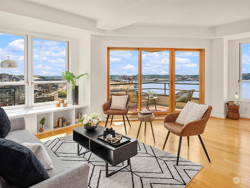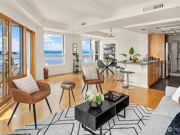 Experience the breathtaking views and sunsets of the Pacific Northwest at the Watermark Tower! This classic downtown Seattle high-rise unit occupies a southwest corner on the 17th floor, providing timeless elegance and stunning views over Elliot Bay, from Mount Rainier to the Olympics. Featuring oak flooring, new paint and new carpet, with granite countertops in the kitchen. Only steps to the new waterfront park, Ferries, Pike Place Market, SAM, Stadiums and more! Amenities include a fitness center, sauna, conference room (with free Wi-Fi and outside deck), on-site resident manager and rooftop deck. The unit has a prime parking spot at the skybridge lobby entrance and a basement storage unit. Come experience the best of Seattle living!