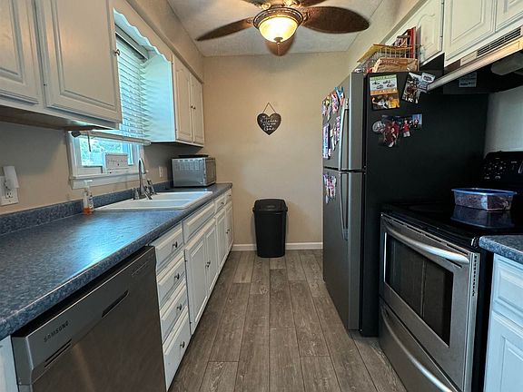 Cute is an understatement! Check out this 4 bedroom, 1.5 bathroom home. The updates are fabulous--new siding, roof, soffits, oversized gutters, and downspouts were all installed in 2022. New vinyl flooring and carpeting was installed throughout the home in 2022 as well. The walls and baseboards have been painted, as well as the kitchen cabinets. The windows have been replaced, as well as the blinds. Seriously, you just need to move in! The main level of this home features 3 of the 4 bedrooms and a full, spacious bathroom. The dining room is conveniently located off of the kitchen with a sliding door that leads to the deck and the spacious yard. The spacious basement has a bar and a recreational room, as well as a roomy bedroom. The utility area has a half bath and plenty of room for storage! Call for your showing!
