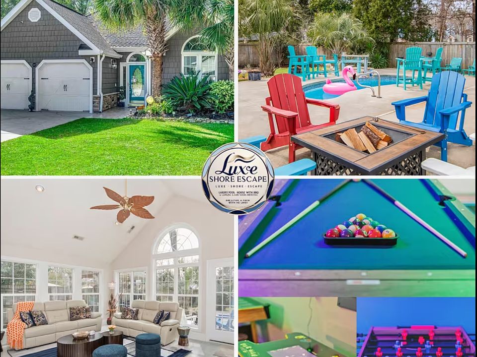Welcome to The Luxe Shore Escape a beautifully upgraded 4-bedroom, 3-bath luxury retreat in a quiet, safe North Myrtle Beach neighborhood. Just minutes from the ocean and Barefoot Landing, this home combines coastal charm with modern sophistication.