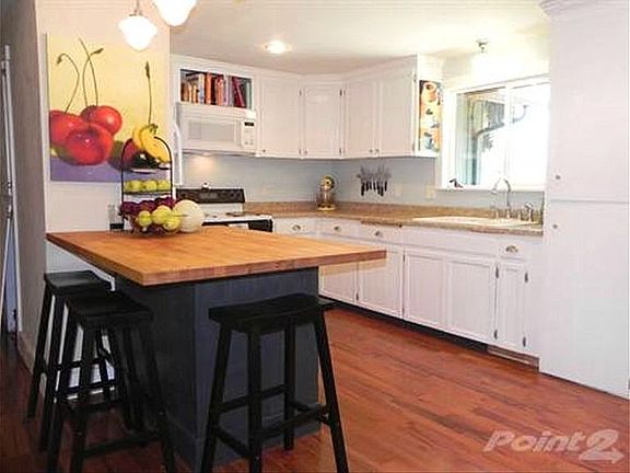 Charming! Updated with beautiful hardwood floors throughout. Pretty kitchen with mobile butcher block table. Garden window, wood-burning fireplace, vinyl windows. Master bedroom has private bath. 1-car attached garage, Large ~10x15 shop with workbench. Kitchen, dining and family rooms overlook the fenced yard with covered patio.