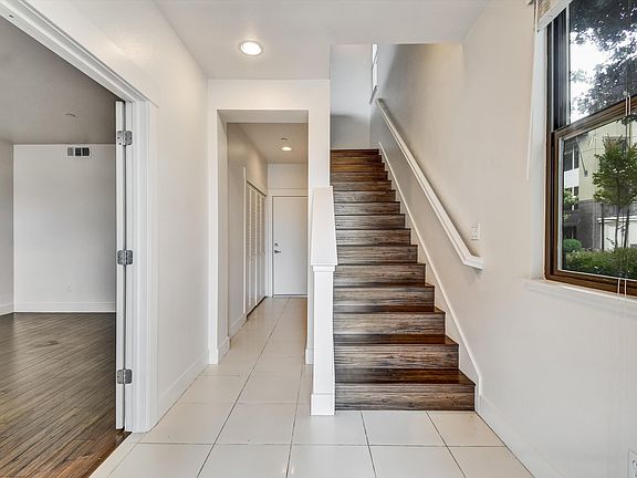 Discover this bright, modern, light-filled, corner unit townhome-style condo offering 3 bedrooms and 2 full baths across 1,630 sq ft, perfectly situated at the vibrant intersection of Berkeley, Emeryville, and North Oakland. The entry level features a private first bedroom with a walk-in closet, ideal for a home office or guest suite, alongside laundry and direct access to the attached two-car garage. Upstairs, the main floor boasts an open-concept living, dining, and kitchen areaperfect for entertainingplus a sheltered outdoor balcony. The primary suite includes a walk-in closet and an en-suite bathroom with double sinks. Commuter-friendly, you'll find easy access to major freeways, Transbay, and the free Emery-Go-Round to BART, while enjoying proximity to the Emeryville Greenway, Berkeley Bowl West, and this richly textured neighborhood's best parks and dining.