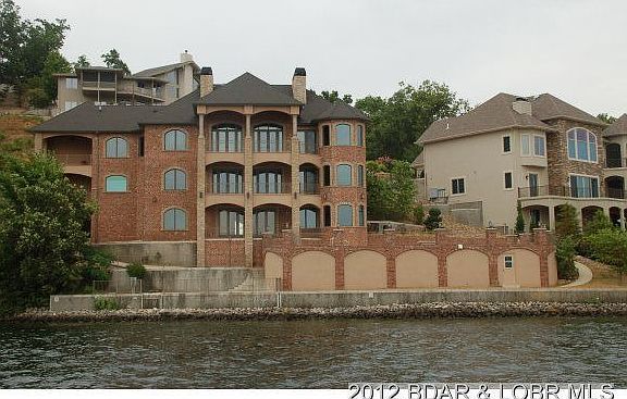 Bank Owned Masterpiece at unbelievable price is now available! All brick and rock home featuring over 250 feet of beautiful Lake Ozark waterfront. Home has 4 suites for large family entertaining, spacious decks and it's very own swimming pool. Beautiful landscaping, 5 car garage, golf cart path from garage to pool, and wonderful main channel views from spacious decks on 3 levels are just of the few of this home's features. Enjoy a second kitchen custom stone and tile work, hearth room, huge master suite, central vacuum, and stand alone icemakers are some of great upgrades with this home. Fire pit and waterfall by pool. Located near the strip with easy access in and out of the lake area. You have to see this place NOW!!!