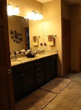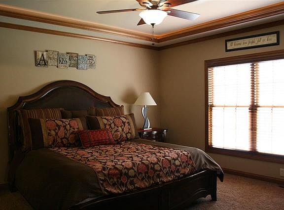 Custom Built Birkey home.. Home was the Showcase home in the 2009 Parade of Homes. Stunning Granite in all bathrooms and kitchen... Home is nestled on a lot and a half. Colored Concrete driveway, Hunter 6 zone sprinkler system , flower beds included.. Professionally landscaped and includes a rock retention wall. Outside speakers. Home has stunning natural hickory hardwood, Anderson windows, Hunter Douglas custom window treatments, darkening wood custom blinds in all finished bedrooms. In the amazing living room a 48 inch gas direct vent stone fireplace from floor to ceiling with custom mantle