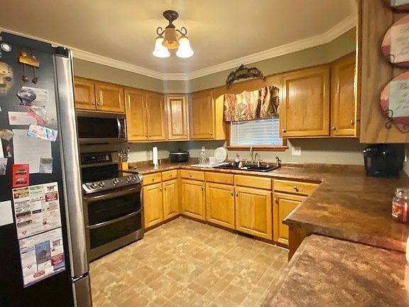 Take a look at this 2,600+ sq ft home with a 20x30 shop in town! Home is 3 bedrooms, 2 full bathrooms and has 2 half baths, newer kitchen appliances stay, 444 sq ft room on the right side of the garage that could be used as a 4th bedroom, office space, game room, etc. There is a partial finished walk-out basement with half bath and lots of storage space. The shop has electric and a lift that conveys! Current termite contract! Pool table, Ring system stay and some furniture negotiable.