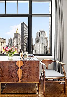 Welcome home to 10 Madison Square West. The first time being offered since the sponsor, world-renowned designer Alan Wanzenberg has expertly conceived this sprawling 3,309 square foot four bedroom, four and a half bathroom residence with the finest high-end aesthetic. Situated above Madison Square Park, the grand living room boasts gorgeous and iconic NYC views of Flatiron. A spacious entry gallery leads you into the apartment and the soaring 11-foot ceilings, wide-plank white oak floors, over-sized windows and uxury finishes all contribute to the opulence found in this home. The chef's kitchen is equipped with a Subzero refrigerator, Subzero wine cooler, vented Wolf range and hood with gas and induction burners, Wolf oven, Wolf built-in microwave, Miele dishwasher, and a generously sized island topped with Carrera marble that seamlessly blends the kitchen with the dining and living room, perfect for entertaining guests. The oversized primary suite is flooded with sunlight and offers more quintessential views of Madison Square Park. The suite features a spa-like bathroom with a large soaking tub, separate rain shower, dual sinks, and heated floors, all outfitted in Carrera marble. Ample closet space completes the room. Each of the three secondary bedrooms also feature large windows with Southern exposures and their own en suite bathroom. This premier residence includes an impressive collection of amenities: a 10,000 square foot Private Residents' Club comprised of The Wright Fit managed fitness center, 60-foot heated lap pool, hot tub, yoga studio, Pilates studio, high energy studio, spa treatment room, separate ladies' and gentlemen's locker rooms with private steam rooms and saunas. Also included are a children's playroom, bike storage, courtyard garden, doorman, concierge, porter, and live-in resident manager. Flatiron, one of downtown NYC's most iconic neighborhoods with its beautiful Madison Square Park, is right outside your door. Opportunities for 5th Avenue shopping and fine dining abound, with Eataly, the Edition Hotel's Clocktower, the newly inspired vegan Eleven Madison Park, and the original Shake Shack across the street, along with Scarpetta, ABC Kitchen, ABC V, Upland, and Gramercy Tavern all within blocks. Pet-friendly and convenient to subways, Grand Central, and Penn Station, 10 Madison Square West is truly a magnificent place to live and enjoy the best of what this city has to offer.